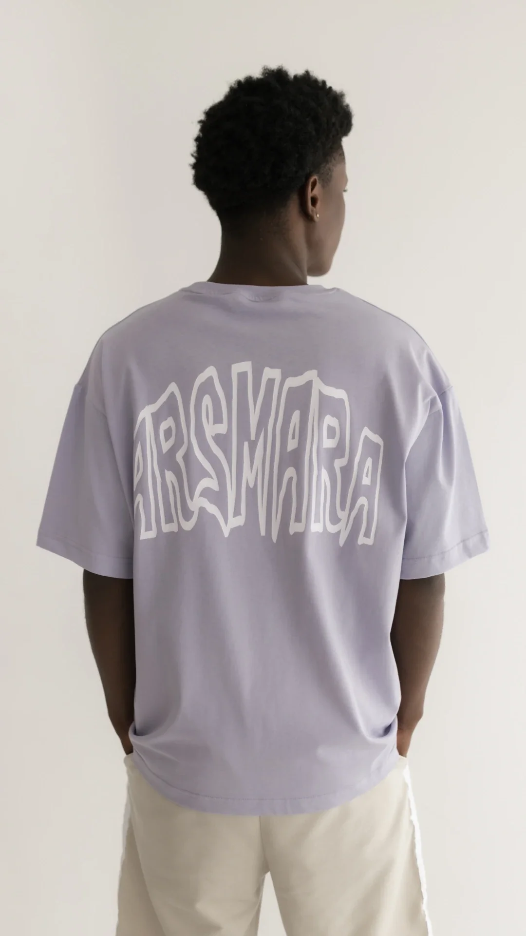 T-shirt oversize fit com decote redondo e de manga curta. Estampado na frente e costas. Malha com tratamento suave e macio de 180 GR.