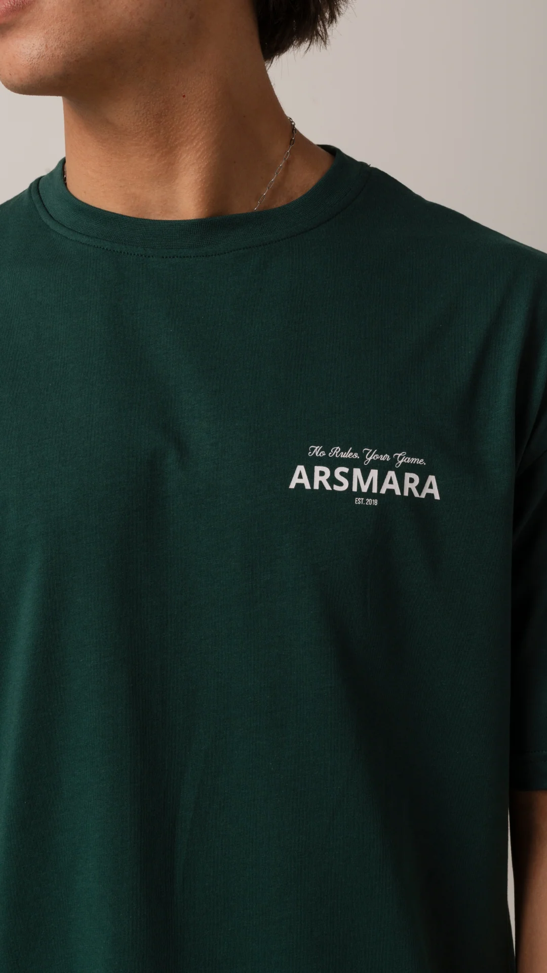 T-shirt oversize fit com decote redondo e de manga curta. Estampado na frente e costas. Malha com tratamento suave e macio de 180 GR.